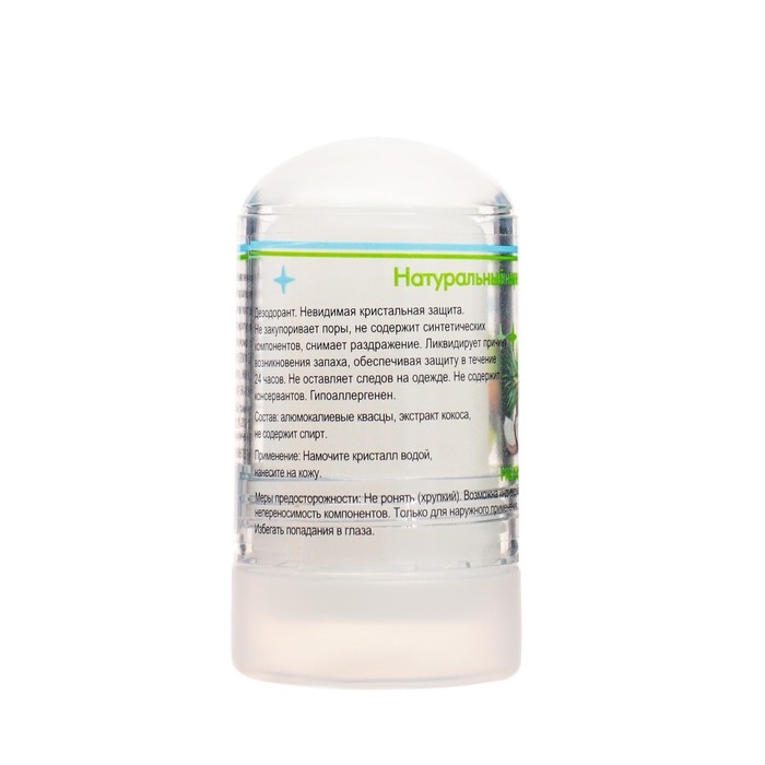 Представляет собой натуральный кристалл алунит, обладающий высокой антибактериальной активностью. Предотвращает появление пота и неприятного запаха в течение всего дня. Заживляет ранки и увлажняет!