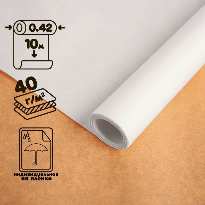 Калька чертёжная под тушь, ширина 420 мм, в рулоне 10 метров, 40 г/м², в ПП пленке