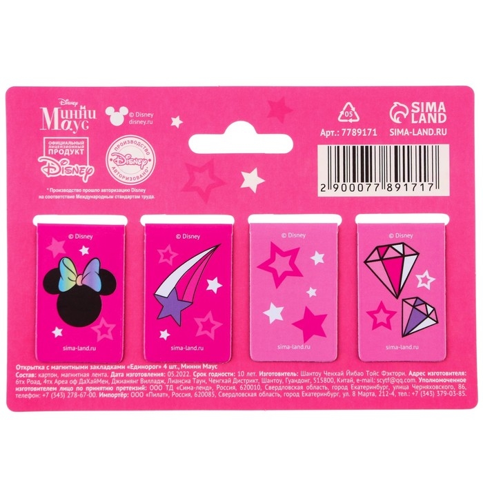 Открытка с магнитными закладками "Самой милой!" Единорог, Минни Маус, 4 шт.