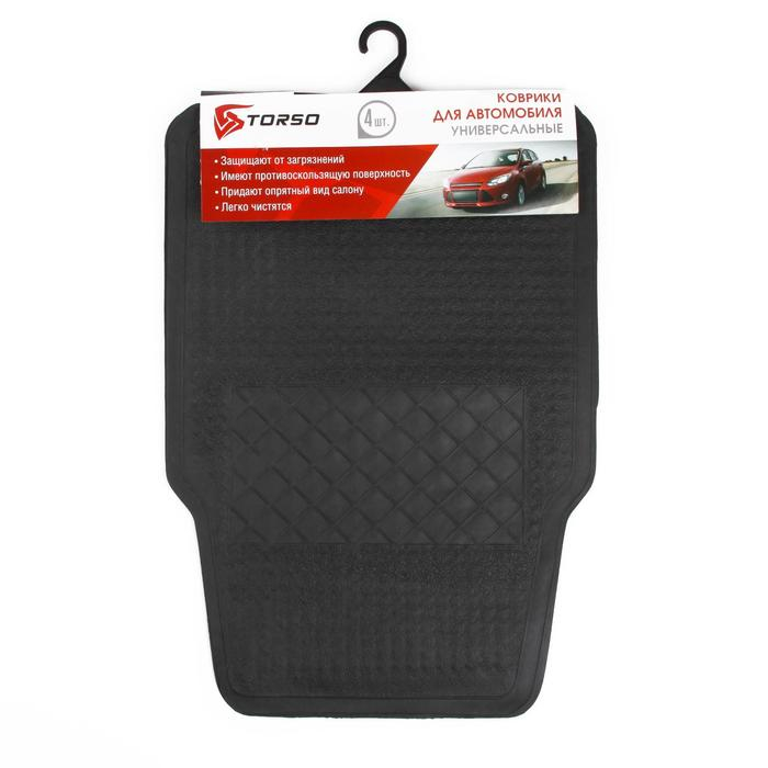 Коврики автомобильные TORSO, резина, 64х44 см, 44х33 см, черный, набор 4 шт