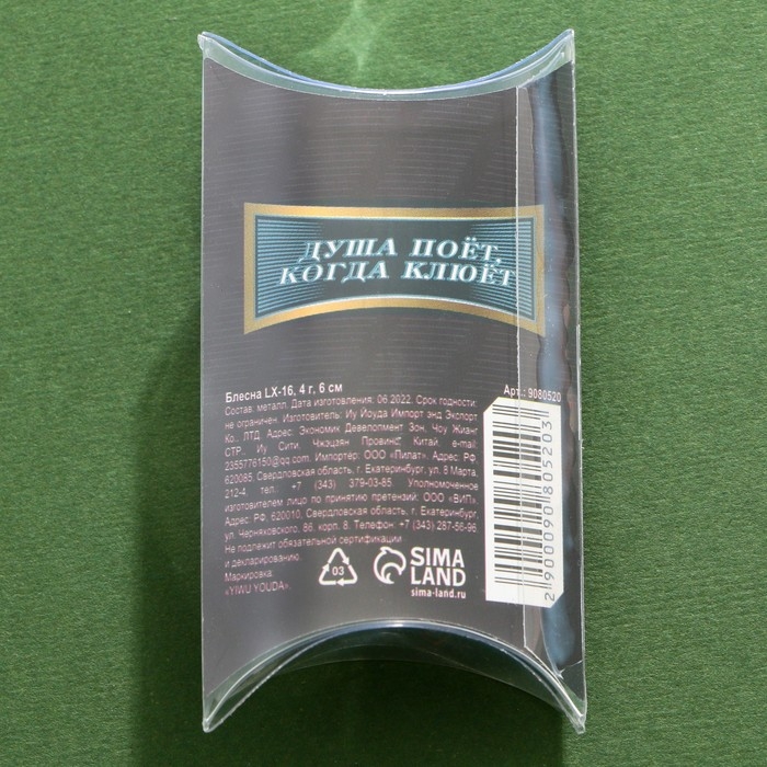 Блесна вращающаяся LX-16 «Крутой рыбак №1»,4 гр, 6 см