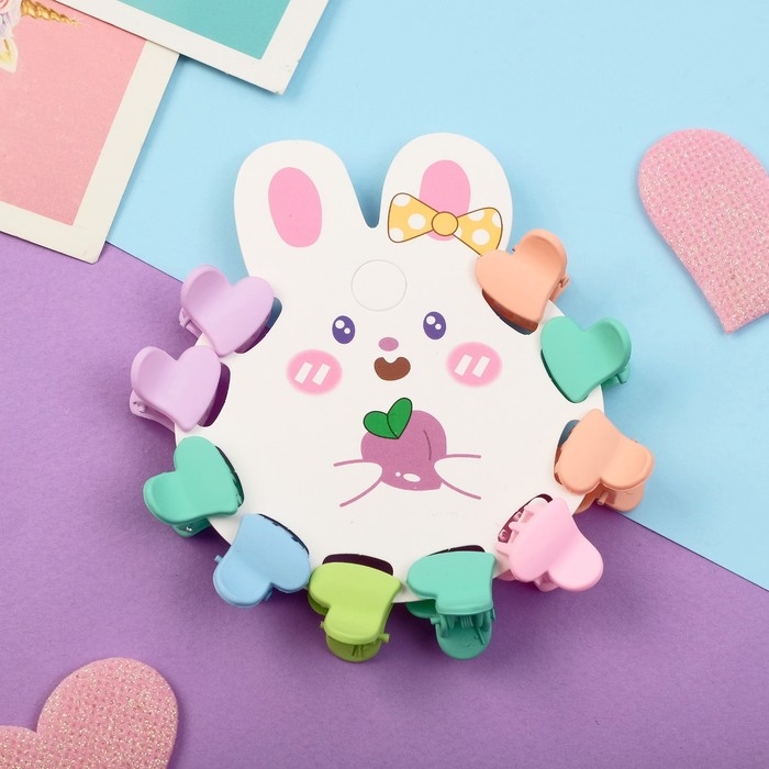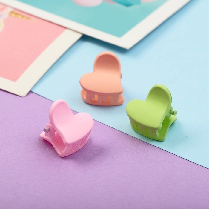 Краб для волос "Куклёнок" (набор 10 шт) сердце, 1,5 см, микс