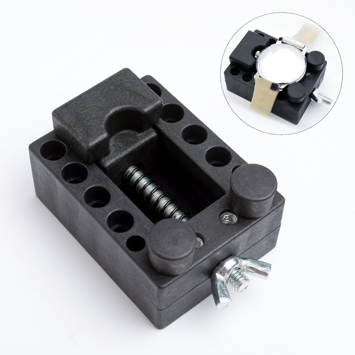 Тиски - держатель прочно фиксируют и не царапают корпус часов. С держателем часов вы можете легко открыть корпус часов для ремонта, замены батареек или других целей.