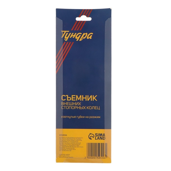 Съемник внешних стопорных колец ТУНДРА, изогнутые губки на разжим, 150 мм