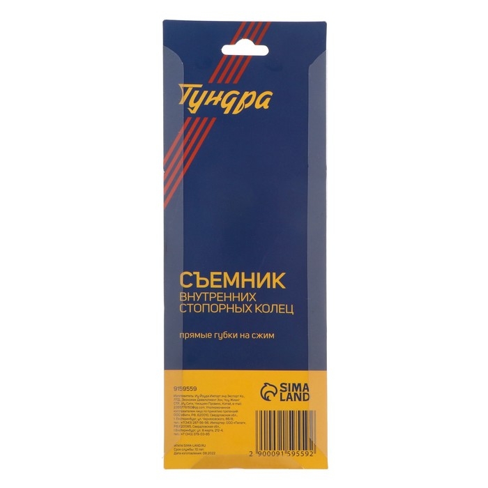 Съемник внутренних стопорных колец ТУНДРА, прямые губки на сжим, 150 мм