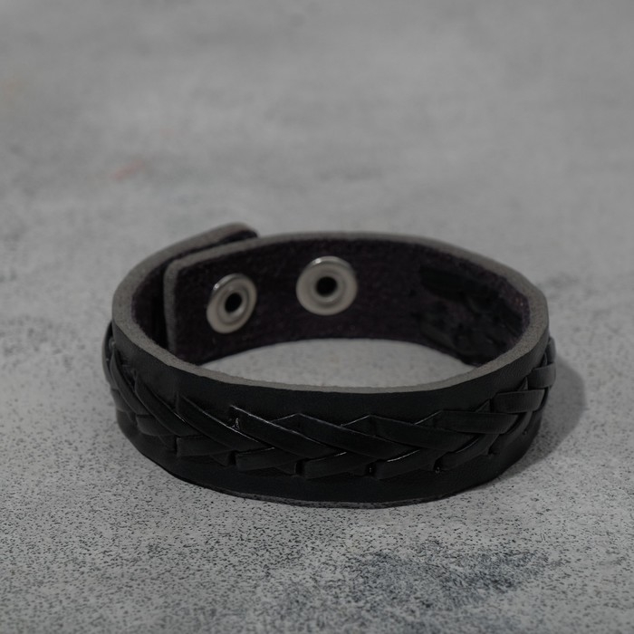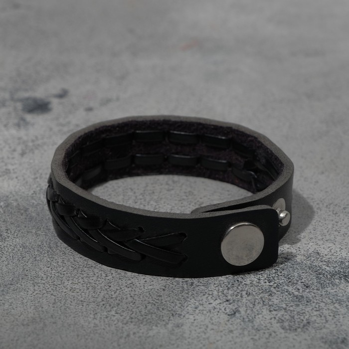 Браслет кожа «Минимал» коса, цвет чёрный, 22 см