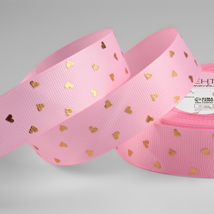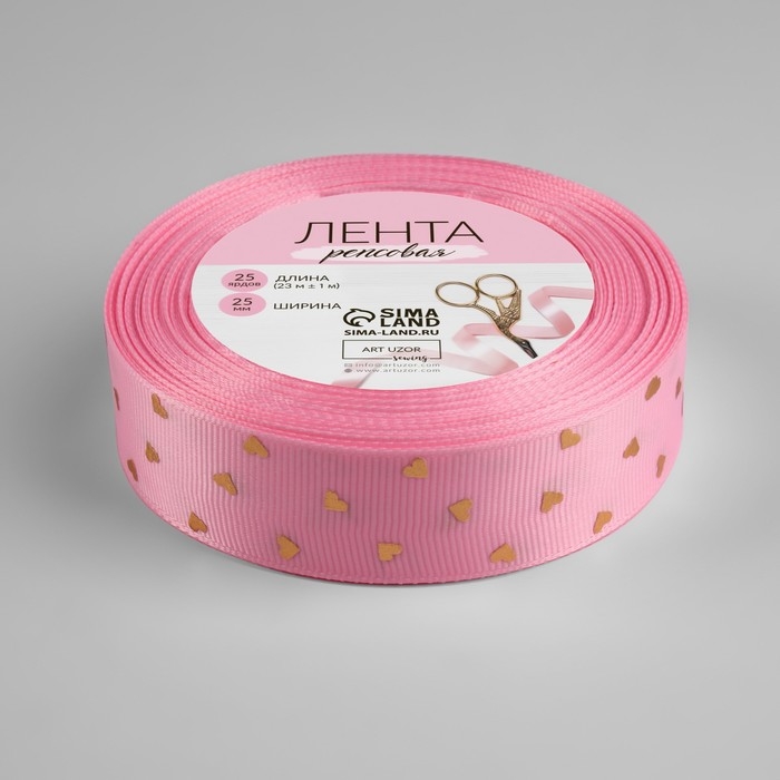 Лента репсовая с тиснением «Сердечки», 25 мм, 23 ± 1 м, цвет розовый №004
