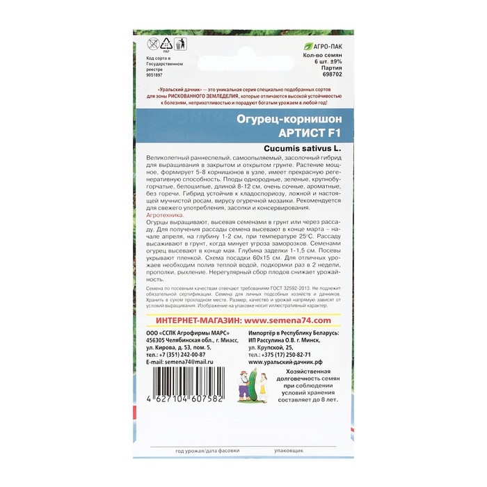 Семена Огурец "Артист", корнишон, F1, 6 шт