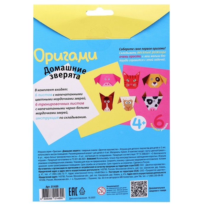 Подарите своему ребёнку увлекательное и полезное занятие с набором для оригами «Домашние зверята»! В наборе он найдёт всё необходимое, чтобы своими руками создать бумажных друзей.