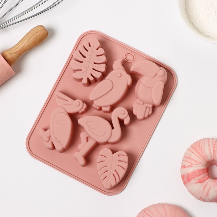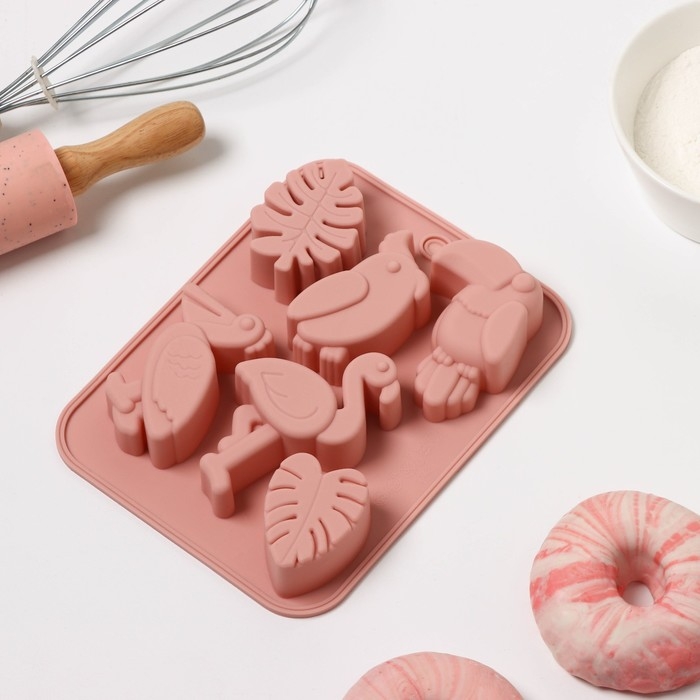 Форма для выпечки Доляна «Тропики», силикон, 18×14×2,5 см, цвет розовый
