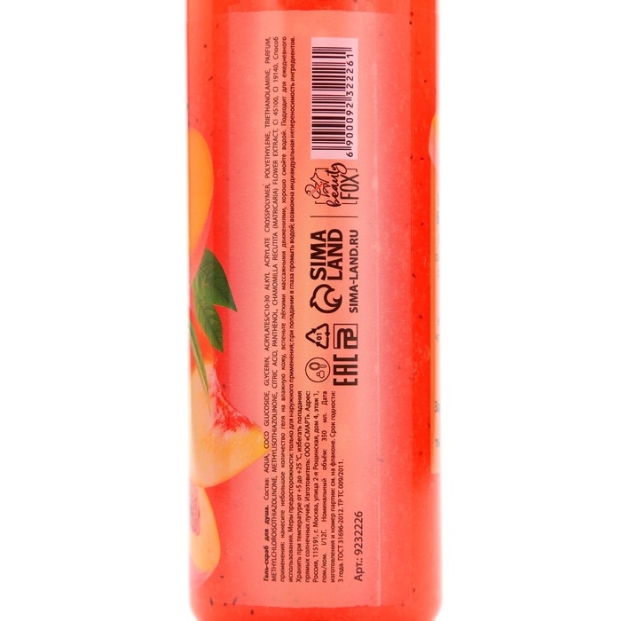 Гель-скраб для душа сахарный, 350 мл, аромат персика, BEAUTY FOOD