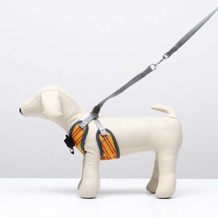 Стильный прогулочный комплект для собак в клетку с украшением в виде бабочки и бубенцом. Шлейка регулируется, поводок круглый прочный , ручка поводка не доставляет неудобств для вас при натежении. Шлея для собак 3 , 5 , 10 , 15 кг средних и мелких пород : шпица , бульдога , чихуахуа , йорка , мопс , такс и маленьких и больших кошек , котов типа мейн кун . Шлейка текстильная , регулируется металическим креплением. Поводок крепится к металлическому кольцу карабином. Шлейка исключит побег животного, если правильно подобрать размер и отрегулировать ремни.