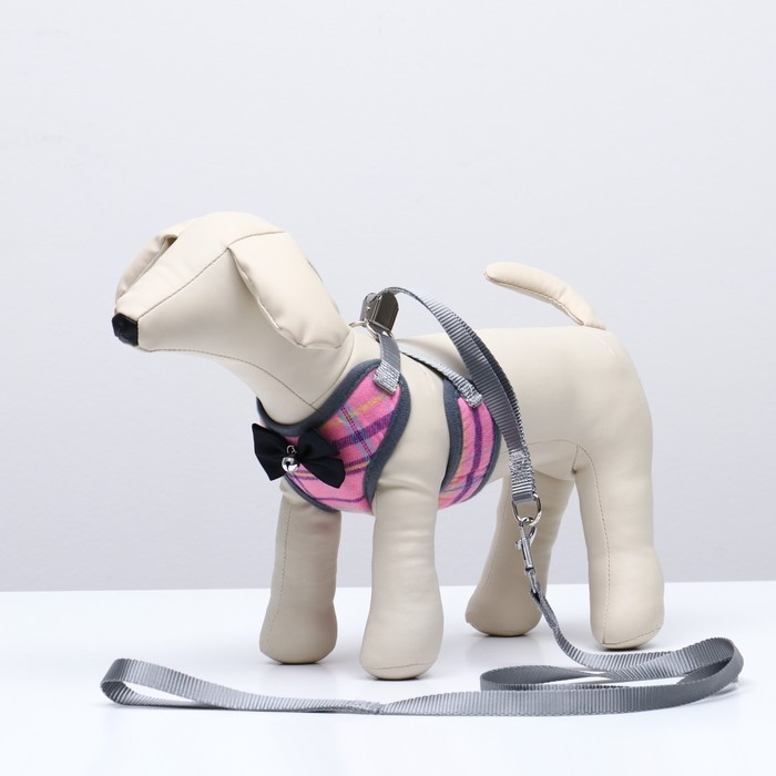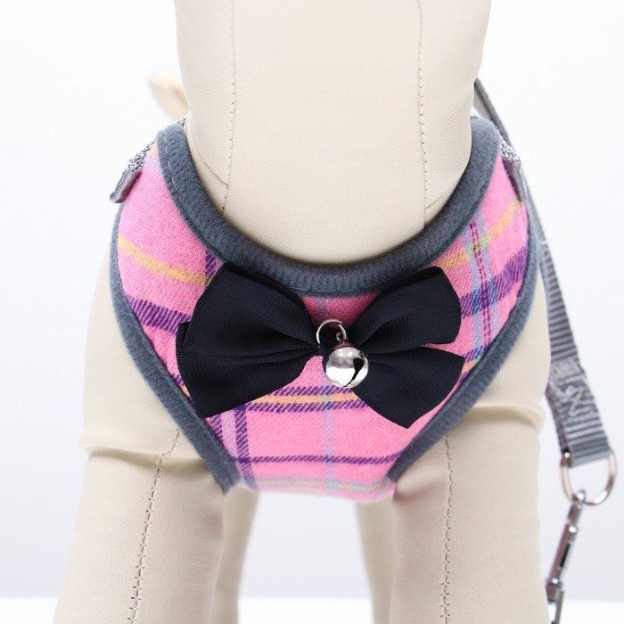 Стильный прогулочный комплект для собак в клетку с украшением в виде бабочки и бубенцом. Шлейка регулируется, поводок круглый прочный , ручка поводка не доставляет неудобств для вас при натежении. Шлея для собак 3 , 5 , 10 , 15 кг средних и мелких пород : шпица , бульдога , чихуахуа , йорка , мопс , такс и маленьких и больших кошек , котов типа мейн кун . Шлейка текстильная , регулируется металическим креплением. Поводок крепится к металлическому кольцу карабином. Шлейка исключит побег животного, если правильно подобрать размер и отрегулировать ремни.