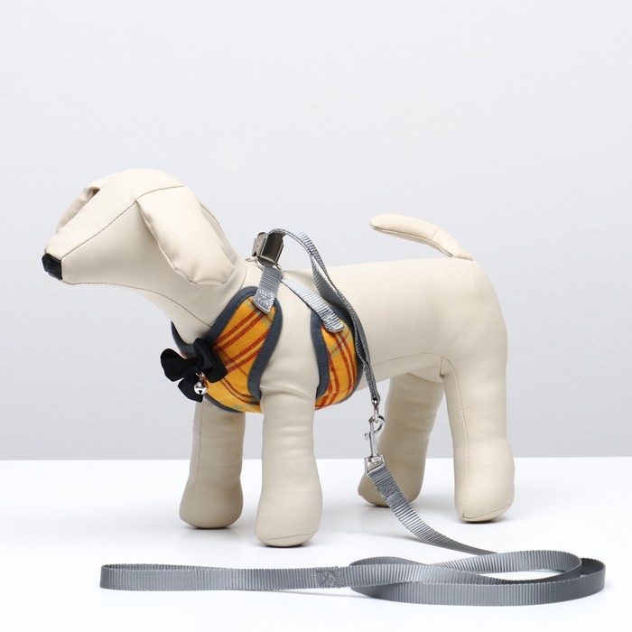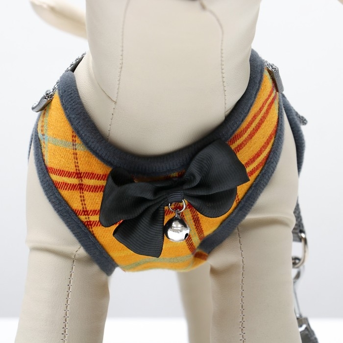 Стильный прогулочный комплект для собак в клетку с украшением в виде бабочки и бубенцом. Шлейка регулируется, поводок круглый прочный , ручка поводка не доставляет неудобств для вас при натежении. Шлея для собак 3 , 5 , 10 , 15 кг средних и мелких пород : шпица , бульдога , чихуахуа , йорка , мопс , такс и маленьких и больших кошек , котов типа мейн кун . Шлейка текстильная , регулируется металическим креплением. Поводок крепится к металлическому кольцу карабином. Шлейка исключит побег животного, если правильно подобрать размер и отрегулировать ремни.