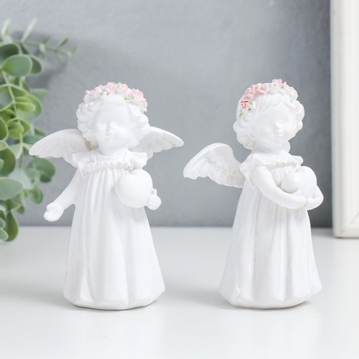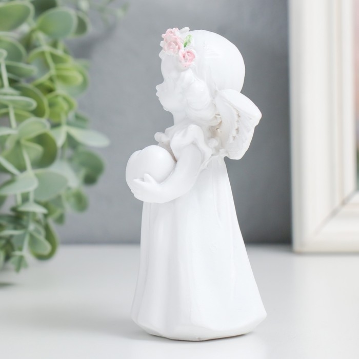 Сувенир полистоун "Малышка-ангелок с сердечком" белоснежный" МИКС 8,5х4х11,8 см