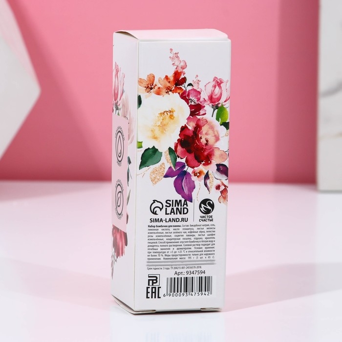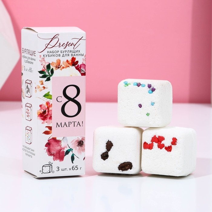 Подарочный набор косметики «С 8 Марта!», бомбочки для ванны с добавками 3 х 65 г, ЧИСТОЕ СЧАСТЬЕ