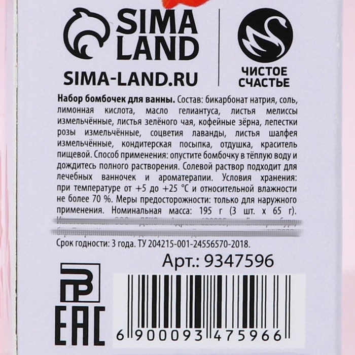 Подарочный набор косметики «Самой лучшей!», бомбочки для ванны с добавками 3 х 65 г, ЧИСТОЕ СЧАСТЬЕ