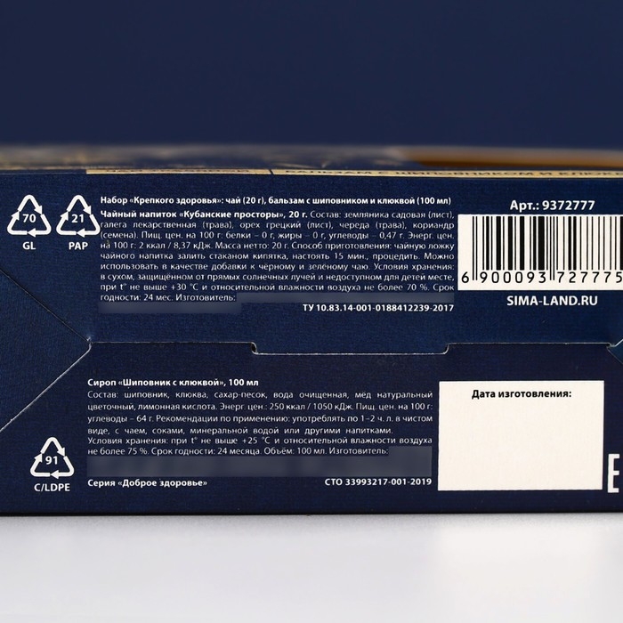 Подарочный набор «С новым годом: Крепкого здоровья»: чай травяной 20 г., бальзам с шиповником и клюквой 100 мл.