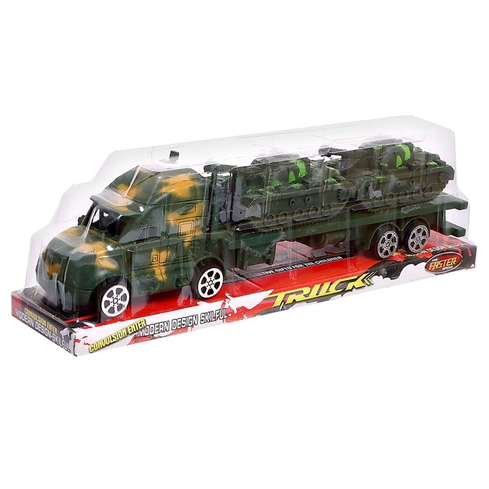 С инерционным грузовиком «Военный автовоз» ребёнок почувствует себя настоящим героем! Автовоз способен перевозить два танка за раз. Боевую технику можно снять с автовоза и играть ей отдельно.