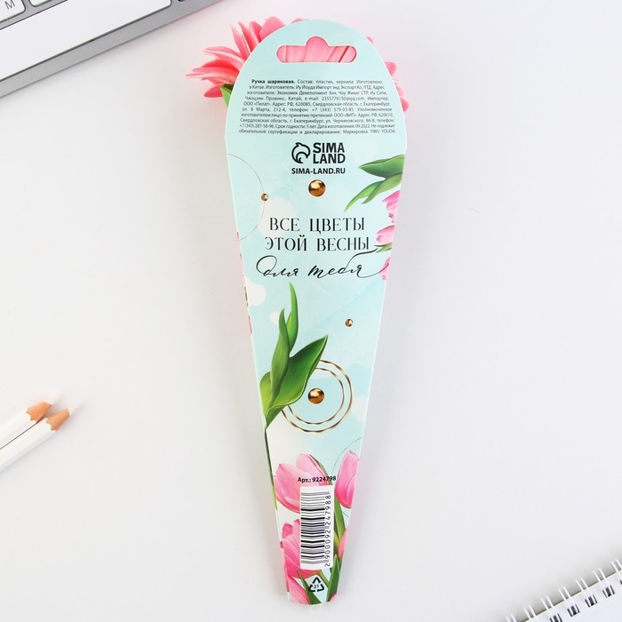 Ручка шариковая синяя паста «Цветок»,пластик, на подложке 8 марта