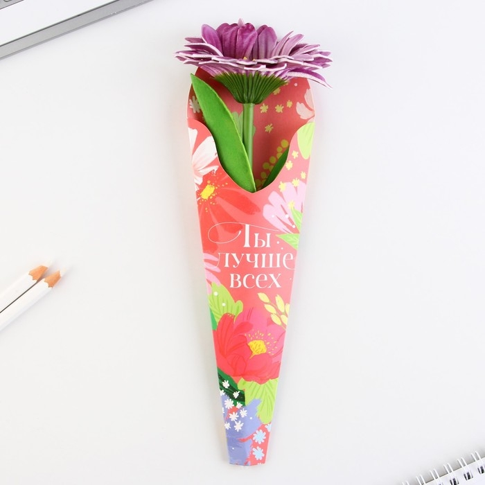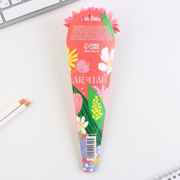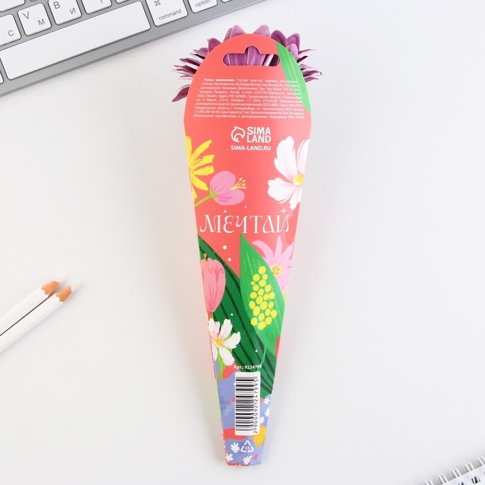 Ручка шариковая синяя паста «Цветок»,пластик, на подложке 8 марта