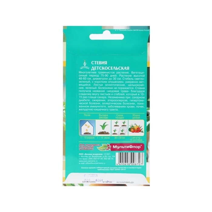 Семена Стевия "Детскосельская", многолетник, сладкий, 7 шт.