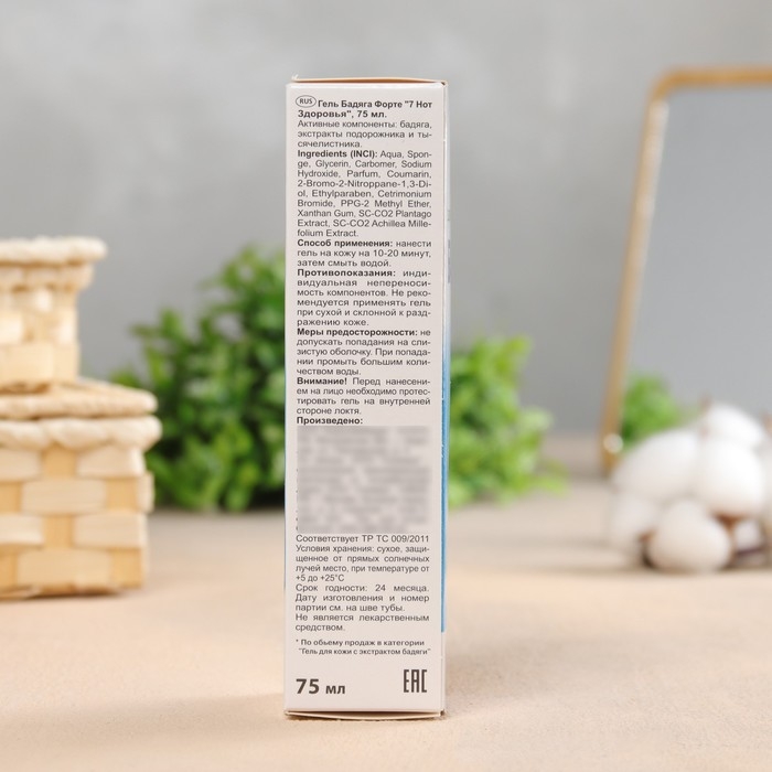 7 НОТ ЗДОРОВЬЯ БАДЯГА ФОРТЕ ГЕЛЬ - гелеобразная текстура от прозрачного до светло-бежевого цвета с умеренно-выраженным запахом