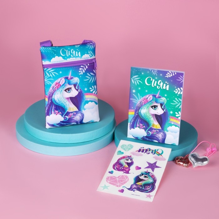Подарочный набор для девочки «Сияй», сумка, набор резинок, блокнот, тату