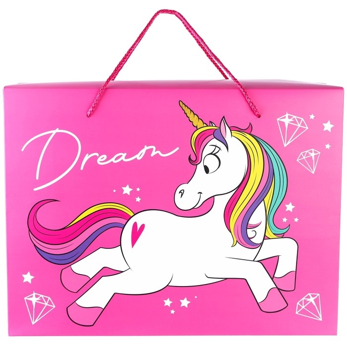 Пакет-коробка, 40 х 30 х 15 см "Dream", упаковка, Минни Маус и Единорог