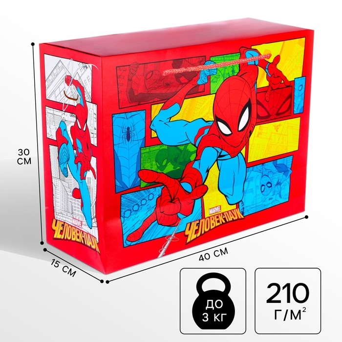 Пакет-коробка, 40 х 30 х 15 см, упаковка, Человек-паук