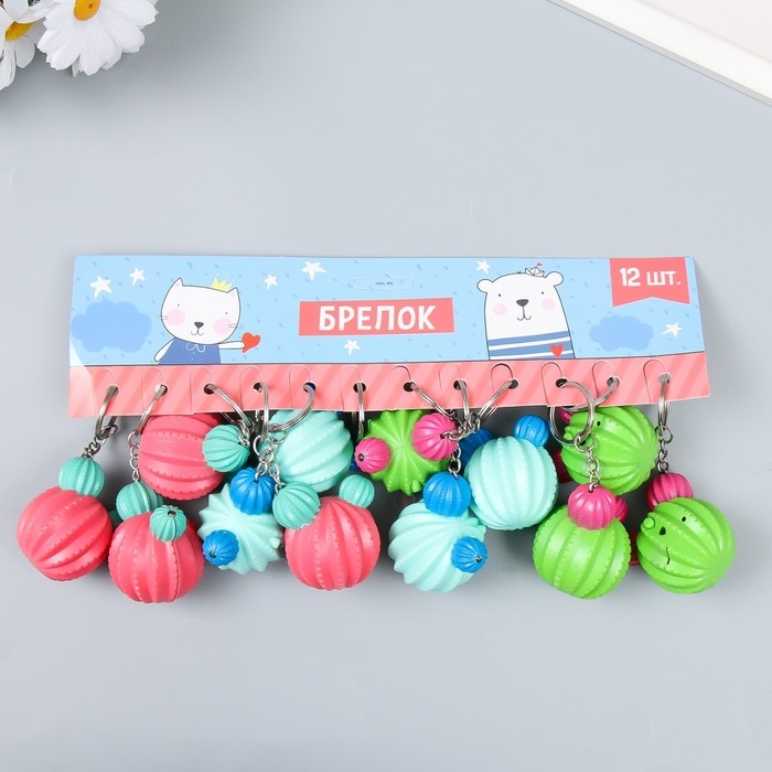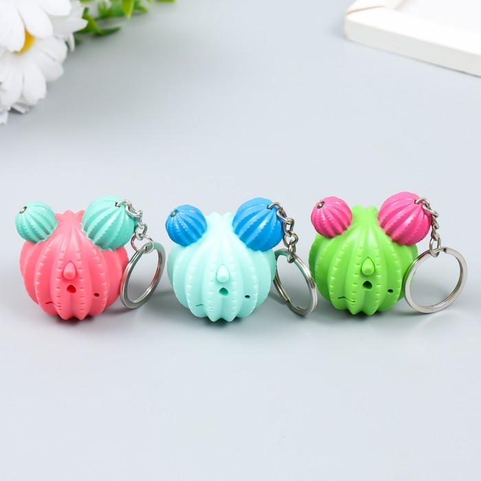 Фонарик кричалка на кольце "Круглый кактус" МИКС