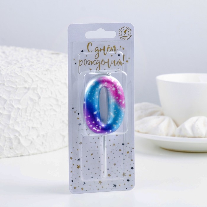 Свеча для торта цифра "0",космос, 5,5 см, 16 мин