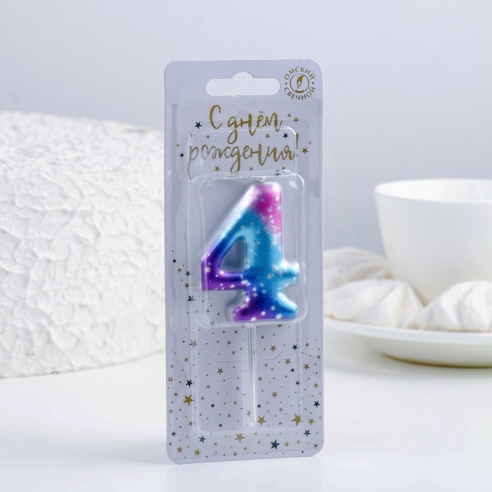 Свеча для торта цифра "4",космос, 5,5 см, 16 мин
