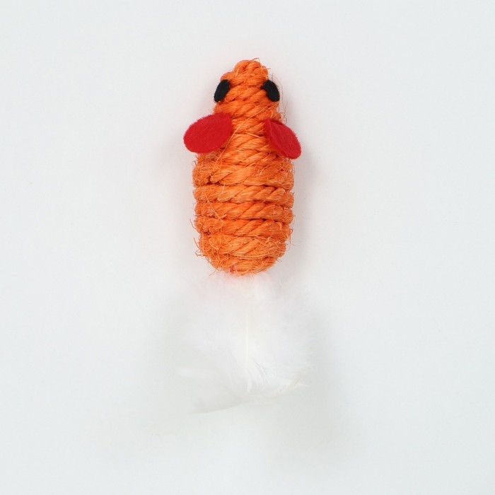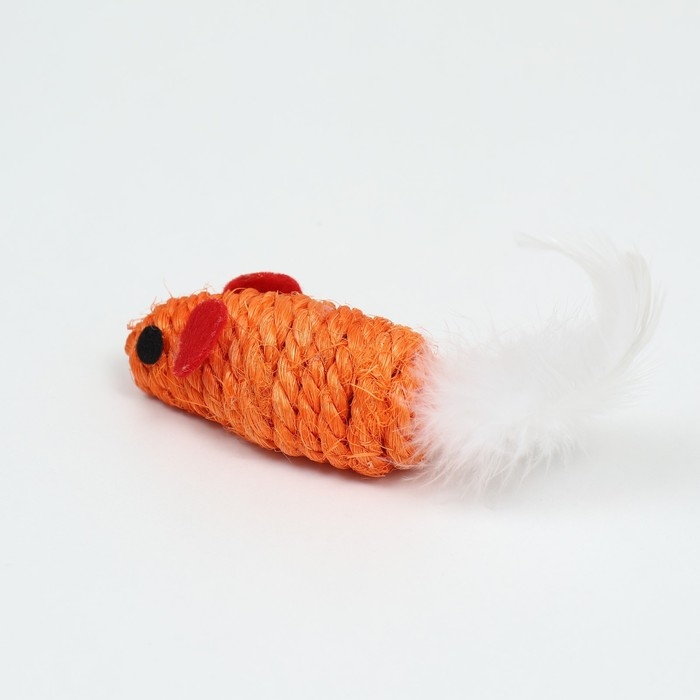 Игрушка для кошек "Мышь сизалевая малая" с меховым хвостом, 5,5 см, оранжевая