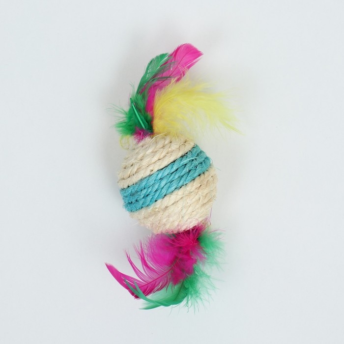 Мяч сизалевый с перьями "Леденец", 5 см, белая/синяя