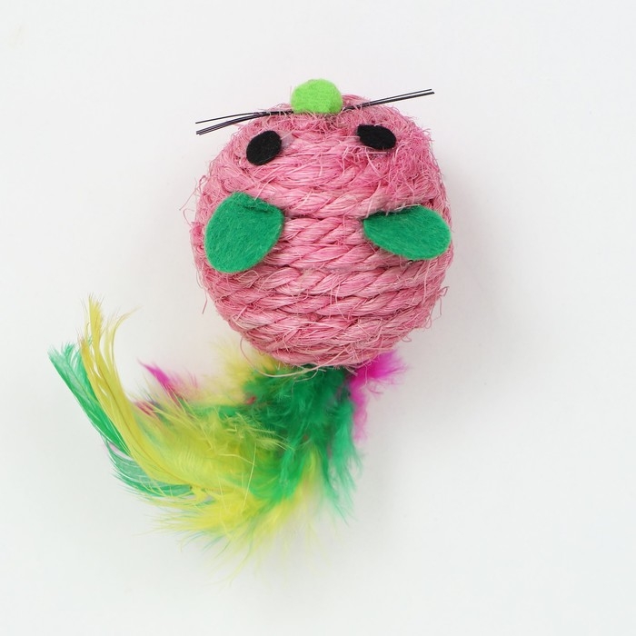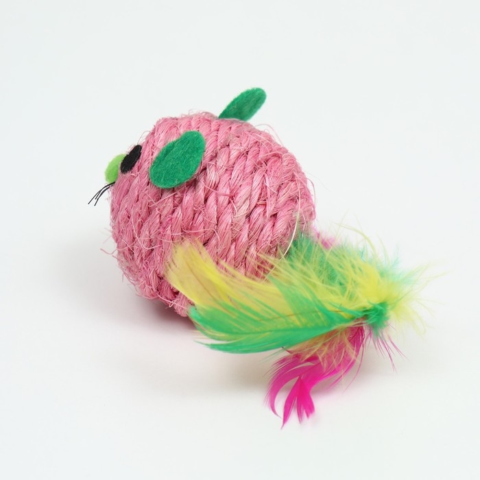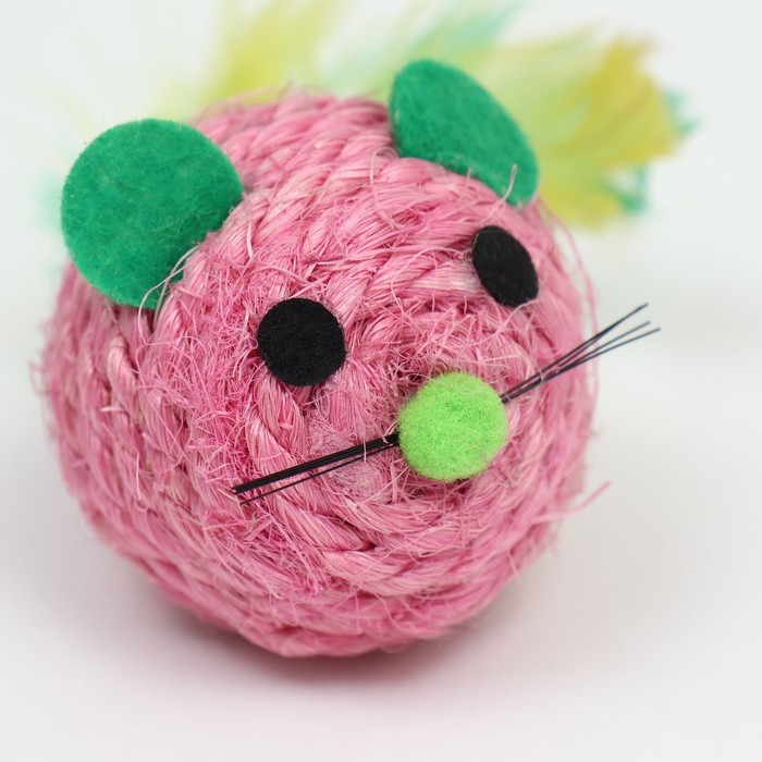 Шарик-мышь из сизаля, 4,2 см, розовый