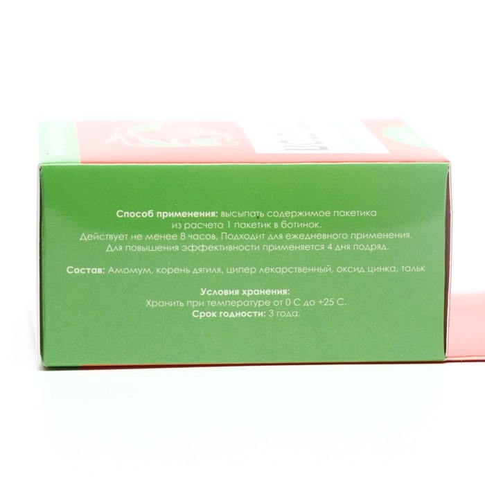 Состав: амомум, корень дягиля, ципер лекарственный, оксид цинка, тальк.