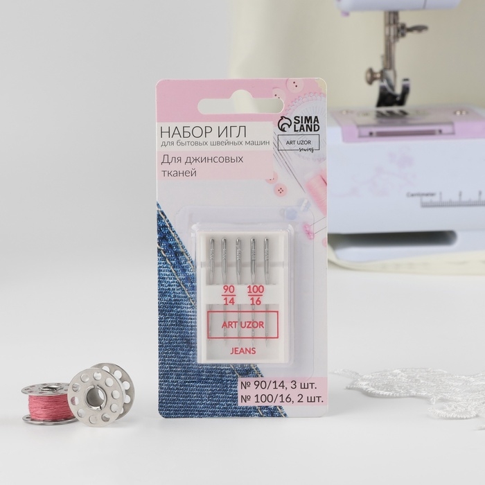 Иглы для бытовых швейных машин, для джинсовых тканей, №90-100, 5 шт