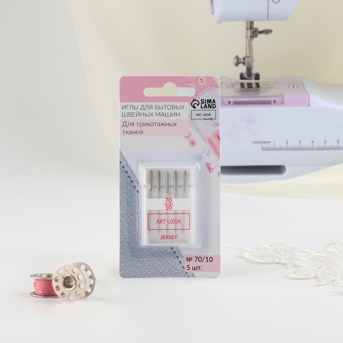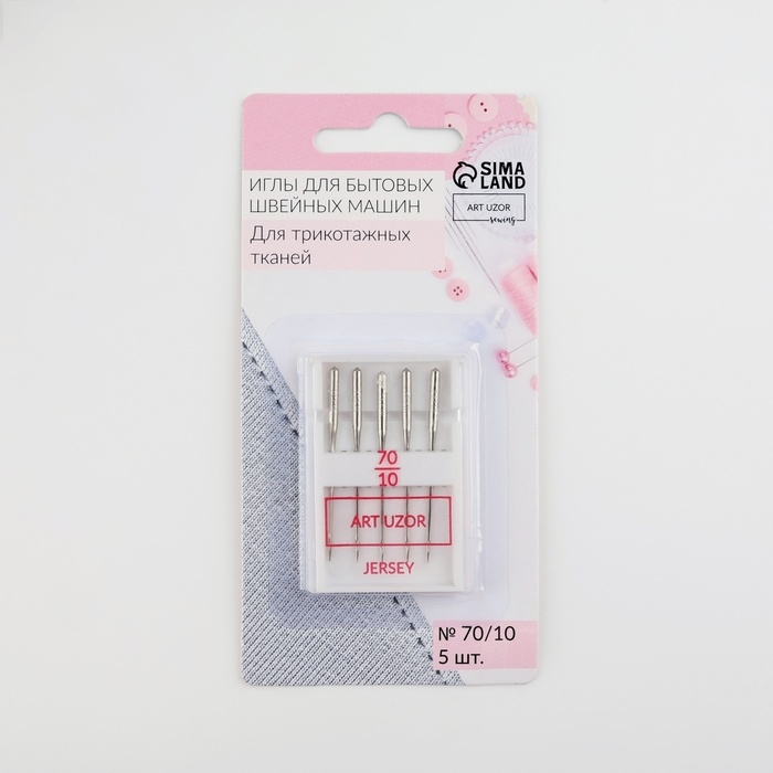 Иглы для бытовых швейных машин, для трикотажа, №70/10, 5 шт