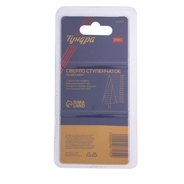 Сверло ступенчатое ТУНДРА ПРОФИ, HSS, TiN, спиральный профиль, трехгран. хвостовик, 4-32 мм