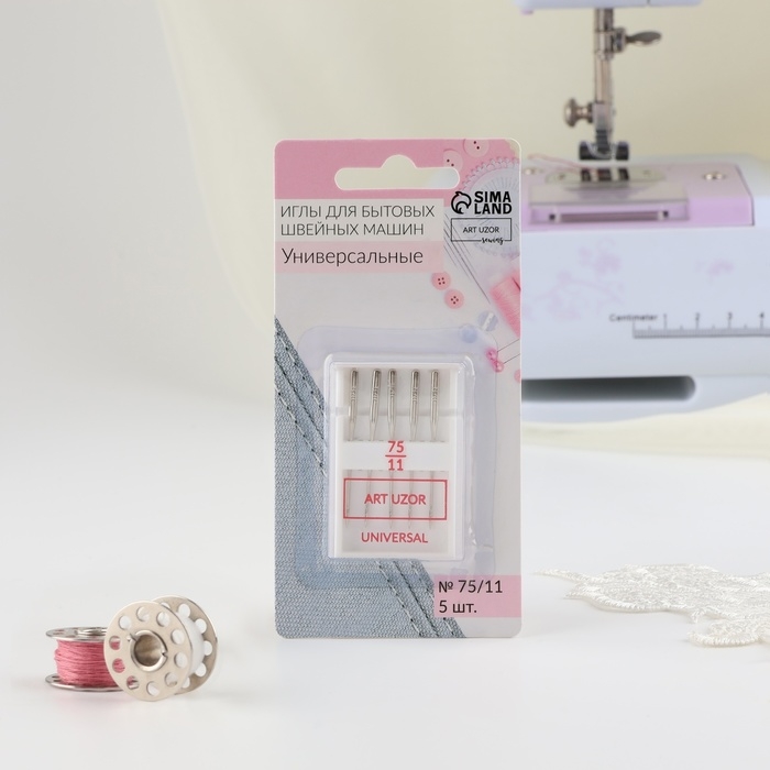 Иглы для бытовых швейных машин, универсальные, №75/11, 5 шт
