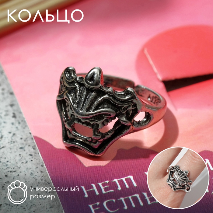 Кольцо «Маска Они», цвет чернёное серебро, безразмерное