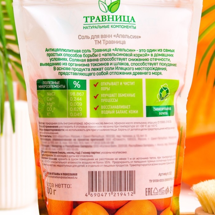 Соль для ванны "Травница" , Антицеллюлитный эффект, Апельсин, 900 г