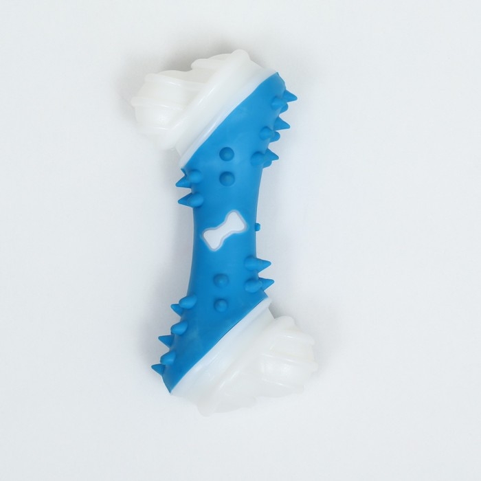 Игрушка двухслойная (твердый и мягкий пластик) "Кость", 12 см, голубая