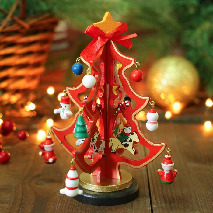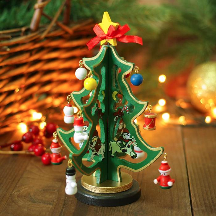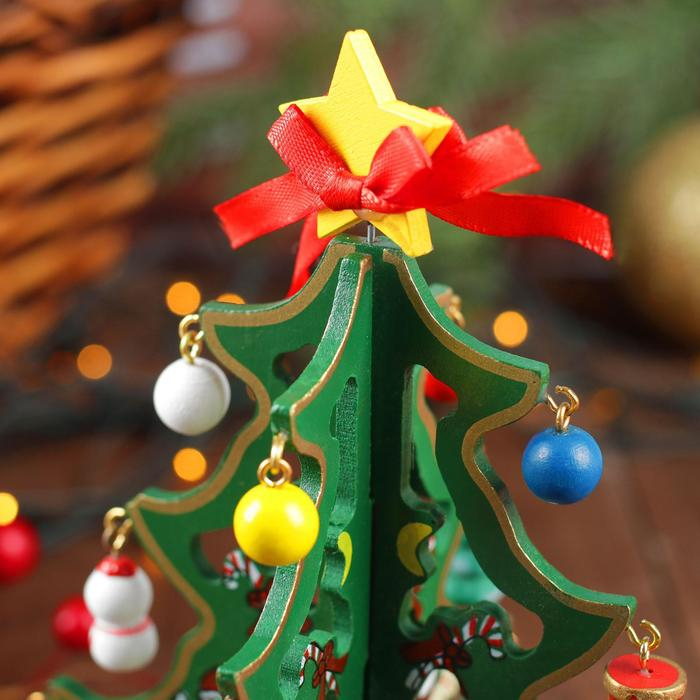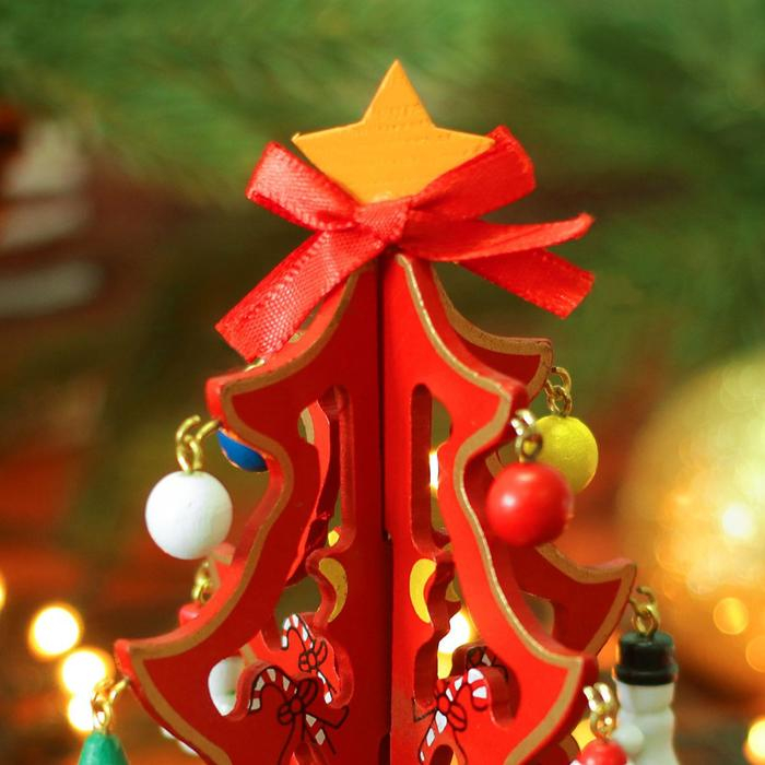 Сувенир новогодний "Елка на подставке", с золотым контуром, 17 см, МИКС