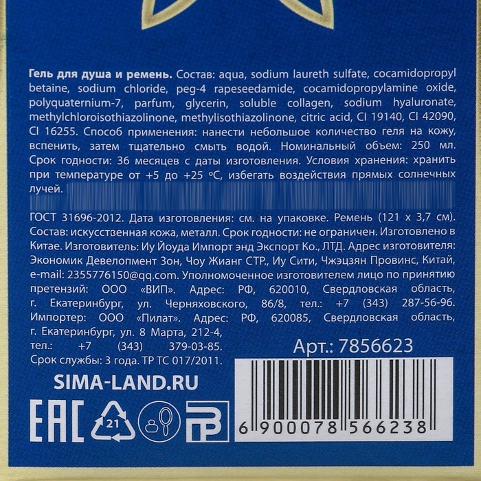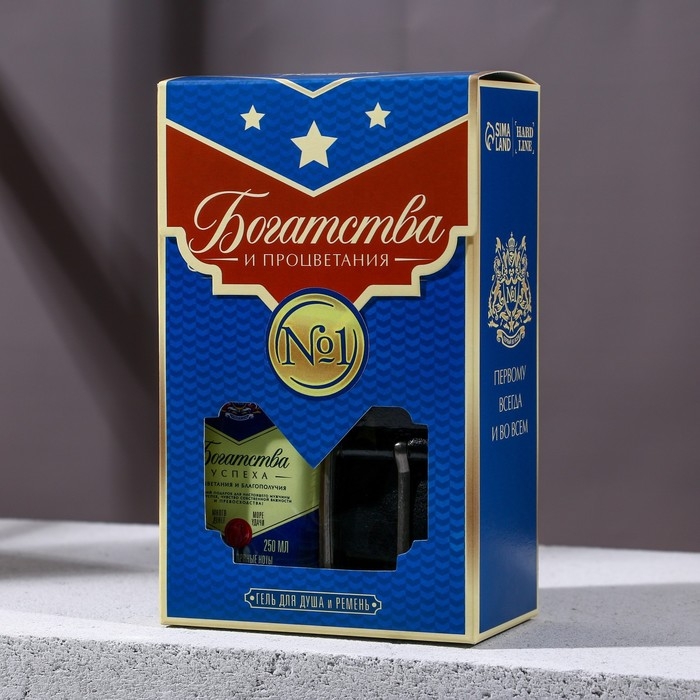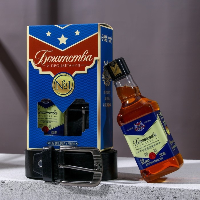 Новогодний подарочный набор косметики «Богатства и процветания!», гель для душа во флаконе виски 250 мл и ремень, Новый Год
