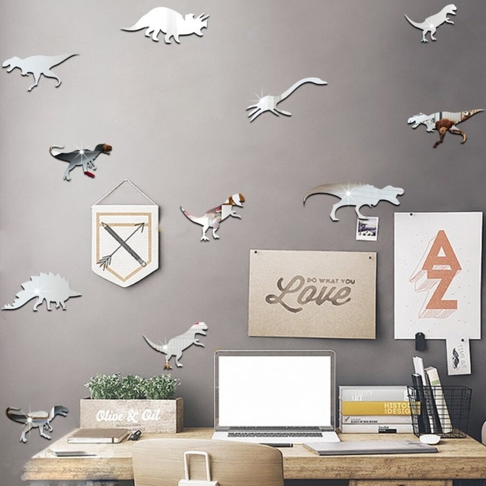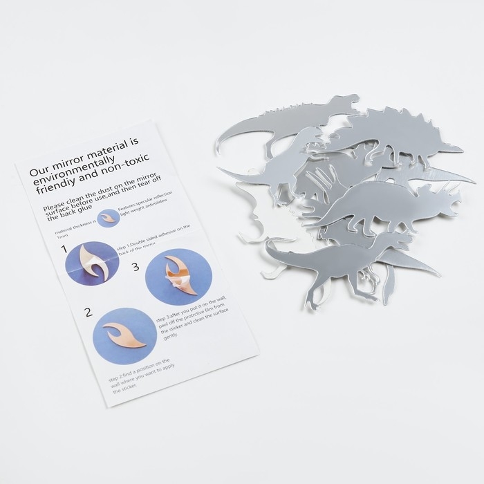 Наклейки детские интерьерные "Динозаврики", зеркальные, декор настенный, 10 шт, шт 10 х 5 см
