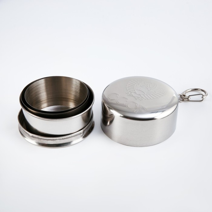 Складной стакан удобно брать с собой в сложенном виде, он занимает мало места и его можно положить в карман или рюкзак, а это очень важно в походах. Стакан из детства вернет вас в беззаботное время СССР. Компактный раскладной стакан, складывающийся и раскладывающийся одним движением руки, имеет карабин, который можно легко зацепить на хлястик ваших брюк или рюкзак. Рюмка туристическая из нержавеющей стали закрывается крышкой, что позволяет ей быть всегда компактной, легко помещающейся в карман.