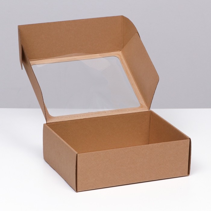 Коробка-шкатулка с окном, бурая, 27 х 21 х 9 см