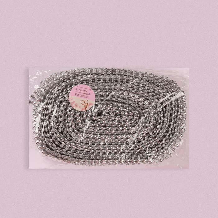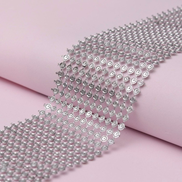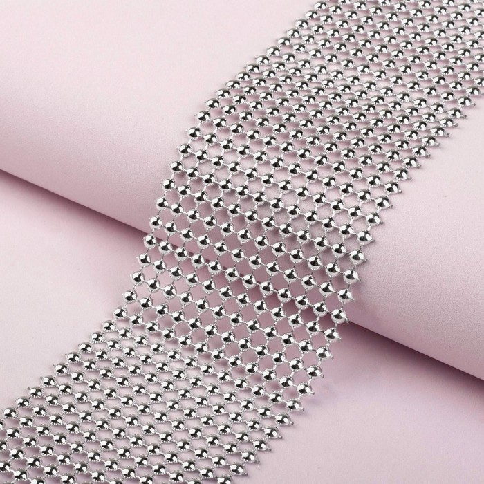 Лента с имитацией выпуклых страз, 5,75 см, 9 ± 1 м, цвет серебряный
